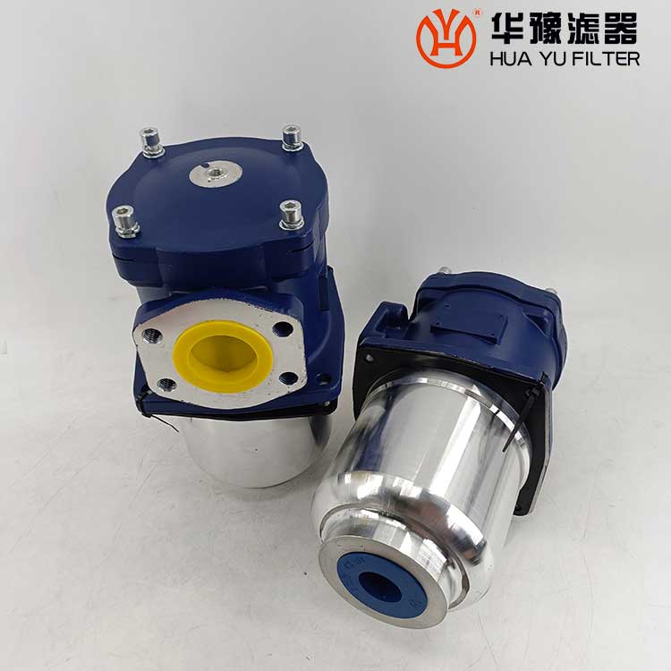 該過濾器的濾芯采用化纖過濾材質,具有過濾精度高,通油能力大,初始壓力損失小,納污量大等優點,并裝有壓差發訊器及旁通閥。當濾芯堵塞到進出油口壓差為0.35MPa時,便發出開關信號,此時應更換濾芯。如果不能馬上停機或無人來更換濾芯,裝在濾芯上部的旁通閥會自動開啟,以保護系統。