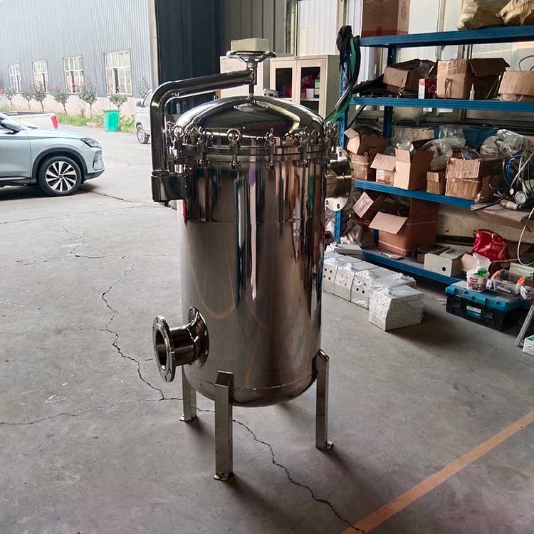 袋式過濾器是一種壓力式過濾裝置,主要有過濾筒體、過濾筒蓋和快開機構、濾袋、加強網等主要部件組成,濾液由過濾機外殼的旁側入口管流入濾袋,濾袋本身是裝置在加強網籃內,液體滲透過所需要細度等級的濾袋即能獲得合格的濾液,雜質顆粒被濾袋攔截該機更換濾袋十分方便,過濾基本無物料消耗。袋式過濾器具備構造合理、密封性好、流通才能強、操作簡便等諸多長處。尤其是濾袋側漏機率小,能正確地保障過濾精度,并能快捷地改換濾袋,使得操作成本下降。濾器內外表面采取機械噴砂拋光解決,平均、易清洗。我們知道,袋式過濾器所采取的過濾方法是側進側出的方法,也可以采取側進底出的方法,通過管道中的壓力將過濾液體介質壓入或抽入袋式過濾器桶體,要過濾的液體介質經由電拋光沖孔支持濾藍承托的過濾袋的過濾,發生變化的固液分別到達液體介質被過濾的結果。