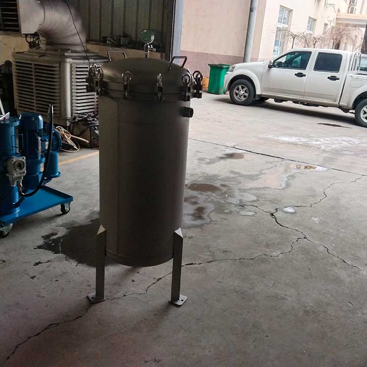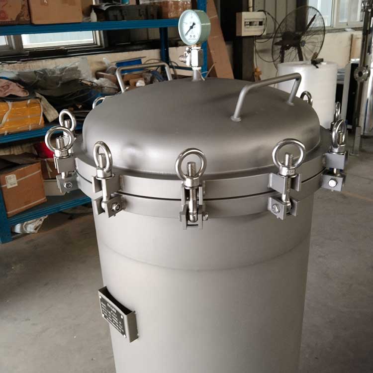 袋式過濾器是一種壓力式過濾裝置,主要有過濾筒體、過濾筒蓋和快開機(jī)構(gòu)、濾袋、加強(qiáng)網(wǎng)等主要部件組成,濾液由過濾機(jī)外殼的旁側(cè)入口管流入濾袋,濾袋本身是裝置在加強(qiáng)網(wǎng)籃內(nèi),液體滲透過所需要細(xì)度等級的濾袋即能獲得合格的濾液,雜質(zhì)顆粒被濾袋攔截該機(jī)更換濾袋十分方便,過濾基本無物料消耗。袋式過濾器具備構(gòu)造合理、密封性好、流通才能強(qiáng)、操作簡便等諸多長處。尤其是濾袋側(cè)漏機(jī)率小,能正確地保障過濾精度,并能快捷地改換濾袋,使得操作成本下降。濾器內(nèi)外表面采取機(jī)械噴砂拋光解決,平均、易清洗。我們知道,袋式過濾器所采取的過濾方法是側(cè)進(jìn)側(cè)出的方法,也可以采取側(cè)進(jìn)底出的方法,通過管道中的壓力將過濾液體介質(zhì)壓入或抽入袋式過濾器桶體,要過濾的液體介質(zhì)經(jīng)由電拋光沖孔支持濾藍(lán)承托的過濾袋的過濾,發(fā)生變化的固液分別到達(dá)液體介質(zhì)被過濾的結(jié)果。